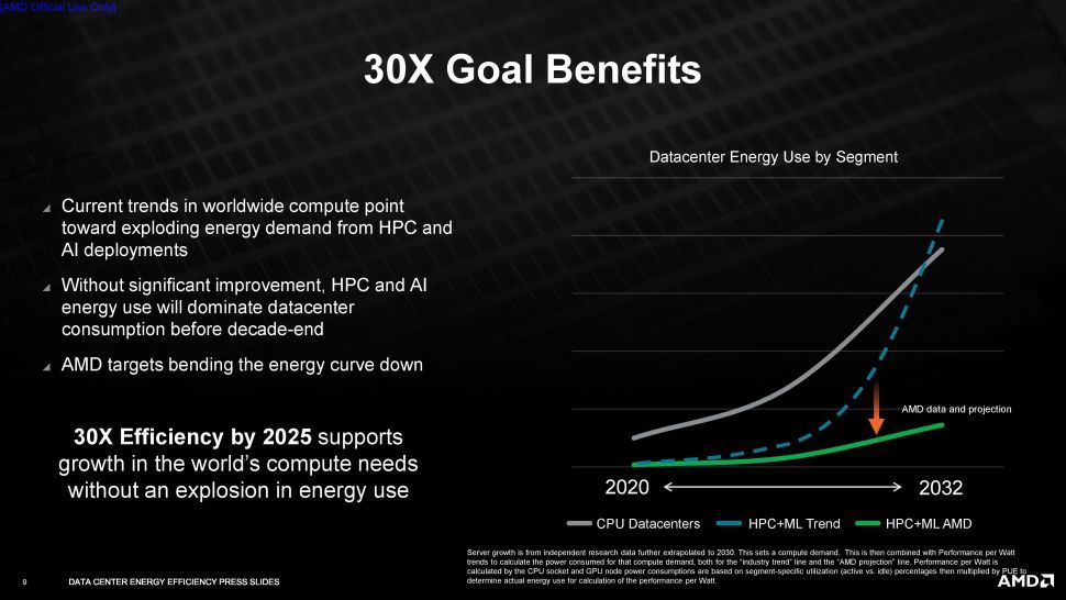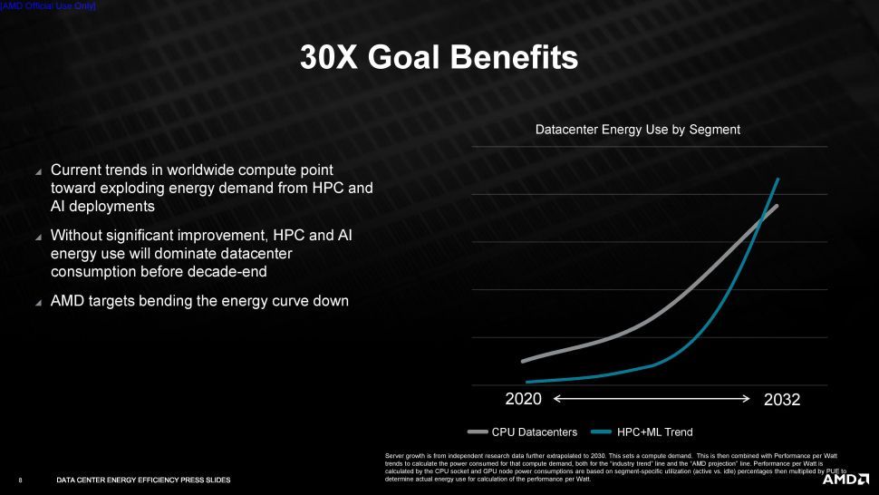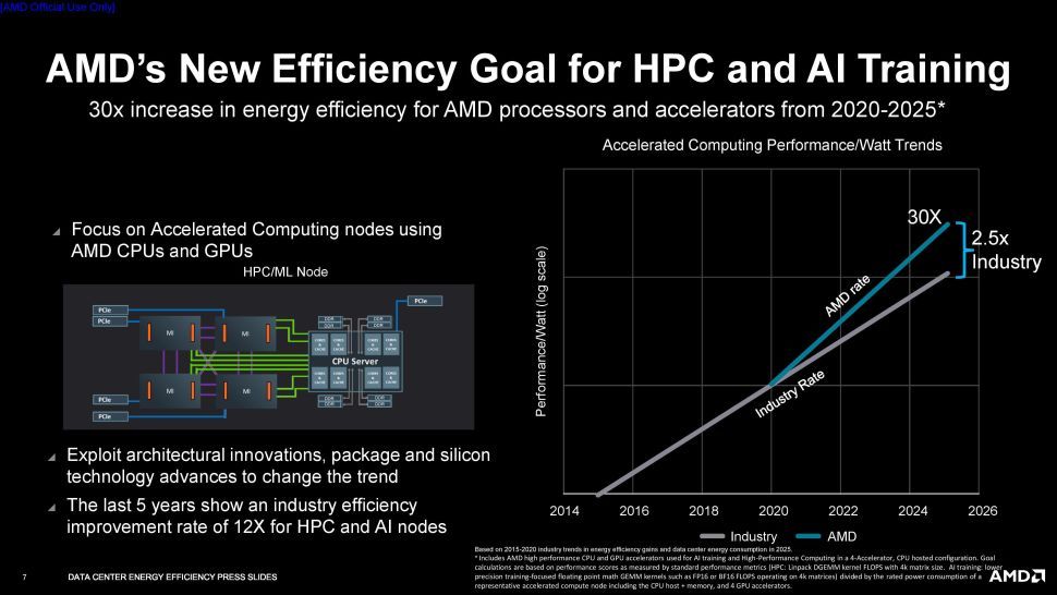 AMD itself knows how lofty a goal this is: the aim surpasses typical industry-wide efficiency improvements by 150%.