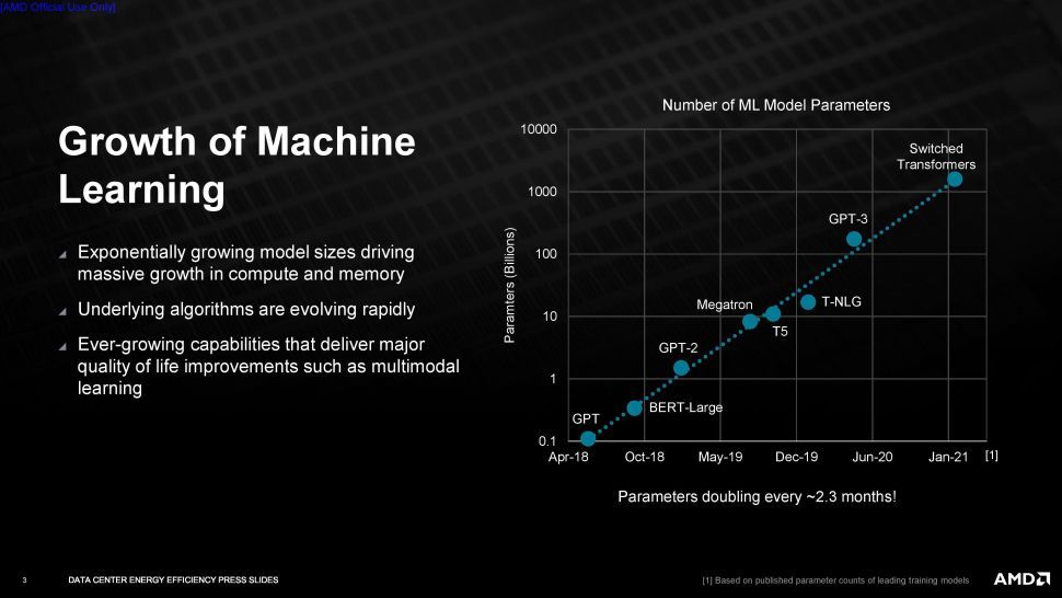 As with any goal, AMD has to have a way of measuring its progress towards its goal. Given that the company is focused on performance in AI and HPC workloads, AMD has settled on FP16 or BF16 FLOPS (Linpack DGEMM kernel FLOPS with 4k matrix size), meaning it uses a data type that is commonly used for AI training workloads.