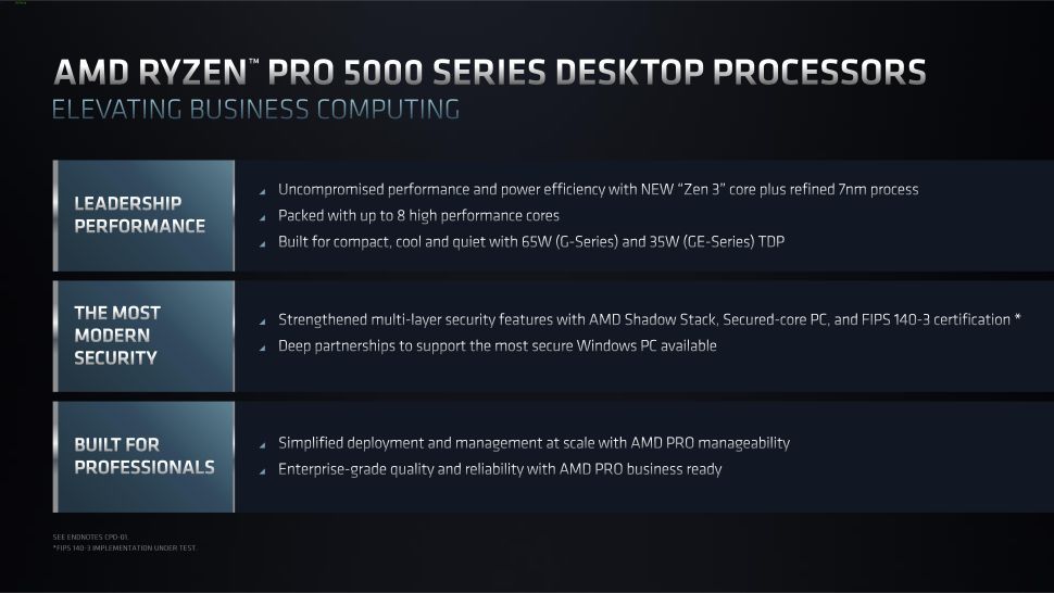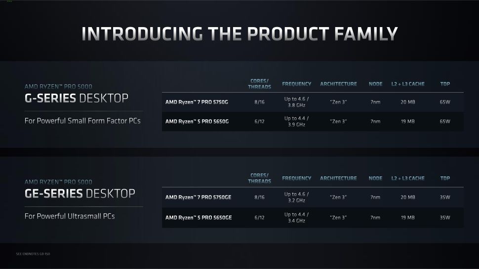 AMD also released its Ryzen 5000G Pro series today. As you can see in the slides above, aside from a few extra professional features, they're identical to the client chips.