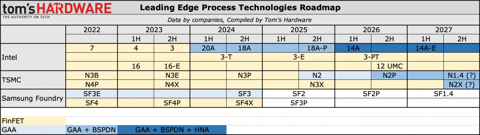 Now, on to the roadmaps (we also have an Intel vs TSMC and Samsung roadmap further below).