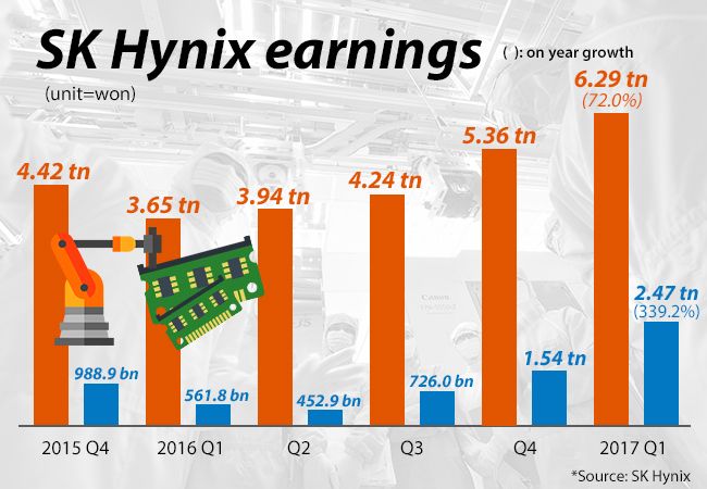 South Korea’s memory chipmaker SK Hynix Inc. posted all-time high quarterly earnings in the first quarter ended March this year, benefiting from the so-called super cycle in semiconductors when prices jump on both tight supply and strong demand to suggest a lengthy boon.