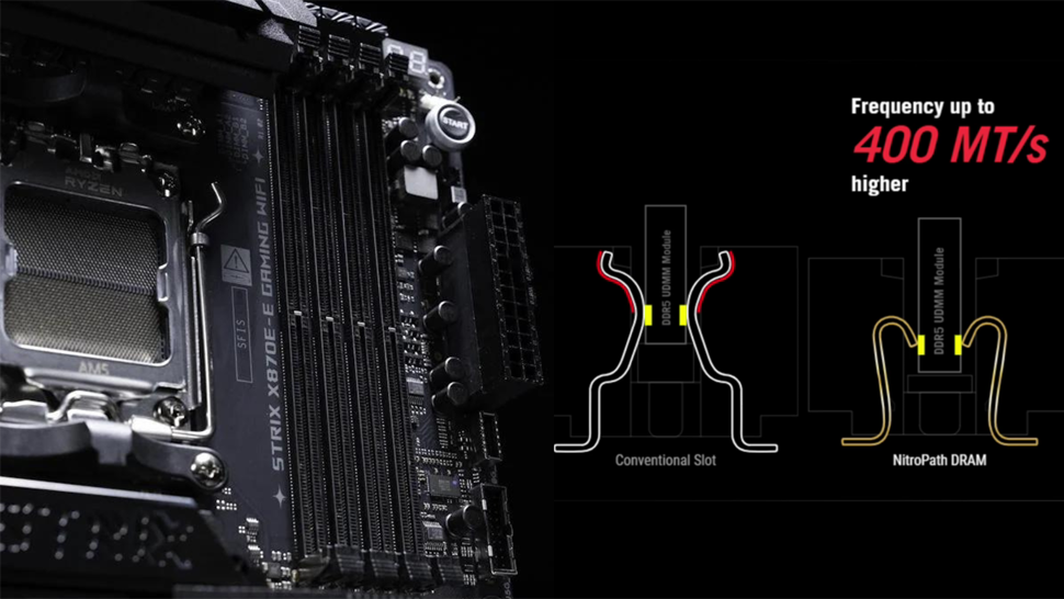 Asus's new short NitroPath RAM slot design, arriving on select Asus X870E and Z890 motherboards, boosts RAM speeds by up to 400 MT/s by cutting down on harmful electrical interference from empty RAM slots.
